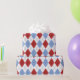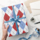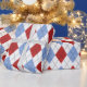 Elegant wrapping paper for weddings, birthdays, and more featuring a red and blue argyle pattern.