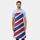 Barber pole stripes with red and blue diagonal stripes like the vintage barber poles of the past.