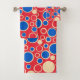 Red And Blue Dots On Red Bath Towel Set