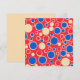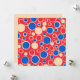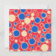 Flat Square Holiday Greeting Card printed with Red And Blue Dots On Red and creamy tan natural wood colour background artwork design illustration by TheFabricSeal at Zazzle. #ZazzleMade https://www.zazzle.com/store/thefabricseal