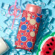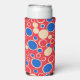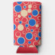 Seltzer Can Cooler Koozie Sleeve Foam Wrap printed with Red And Blue Dots On Red and creamy tan natural wood colour background artwork design illustration by TheFabricSeal at Zazzle. #ZazzleMade https://www.zazzle.com/store/thefabricseal