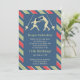 A cool blue, green and red fencing birthday invitation. Great for teenagers and kids that are into sword fighting and fencing and want a spectacular birthday theme. The invitation has a duelling pair on the front and two epees. Very fun for kids that are brave and mighty.