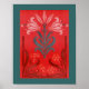 Red And Blue Floral Stencil Art Poster