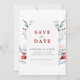 This wedding save the date invitation design features a watercolor red and blue flower arch frame. the back has a vertical couple photo. Personalise with your wedding details.