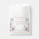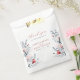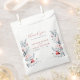 The favour bag features a charming floral design with red and blue flowers. The text reads “Thank You for celebrating with us,” followed by the couple's name along with the event date. This elegant favour bag is perfect for weddings, offering a sophisticated way to thank guests for their attendance. Ideal for couples looking to add a stylish touch to their wedding accessories.