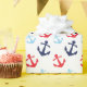 This cute wrapping paper is versatile and can be used for giving gifts or art and craft projects. The design features bright blue, navy blue and bright red nautical anchors on a white background. This is perfect for birthdays.