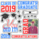 Create a cute scrapbook page for your graduate with this Red and Blue Photo Graduation Stickers. You can personalise this with the grad's photo and the class year in two spots. Phrases like 'You did it', 'Congrats! Graduate', 'Class of 2024', 'Grad' and 'Congratulations' are in blue or red text. It also features grad cap, diplomas and stars.