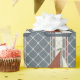 Knotted rope net, red and blue sailboat wrapping paper. You can add text to personalise this nautical sailboat gift wrap.