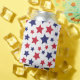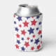 Red and Blue Stars, 4th of July, White Background Can Cooler