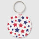 Red and Blue Stars, 4th of July, White Background Key Ring