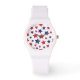 Elegant, stylish and sophisticated pattern with stars in red and blue colour on white background. Modern and trendy gift, perfect for the stars and 4th of July lover in your life.
