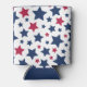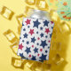 Tossed multi-directional pattern with different sizes of USA American Old Glory flag red and blue stars set on a solid white background. This design has a fixed background, but the size and position of the pattern can be changed. This is a proud patriotic 4th of July Independence Day pattern that will look great on any other day of the year as well.