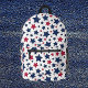 Tossed multi-directional pattern with different sizes of USA American Old Glory flag red and blue stars set on a solid white background. This design has a fixed background, but the size and position of the pattern can be changed. This is a proud patriotic 4th of July Independence Day pattern that will look great on any other day of the year as well.
