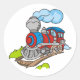 A red and blue train design on train T-shirts, mugs, buttons, tote bags, and other train items sure to please kids of every age who love trains!