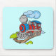 A red and blue train design on train T-shirts, mugs, buttons, tote bags, and other train items sure to please kids of every age who love trains!