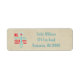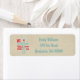 A classic beauty, with a beige background with red and blue theme has a "Merry Christmas" design with the address written in blue snow capped words. Purchase yours today!