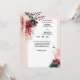 This invitation features an elegant black and red flower design on opposing corners with a light pink boarder and cream centre. The writing is a pretty script font, and there are many fields to customise as needed.