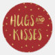Red and Faux Gold Hugs & Kisses Hearts Valentine Classic Round Sticker