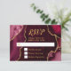 Make a bold and elegant first impression with this burgundy red and gold agate marble RSVP card, featuring rich jewel tones, organic stone textures, and shimmering gold accents perfect for fall and winter celebrations. The rich wine and crimson hues paired with metallic gold detailing create a dramatic yet refined look ideal for a wedding RSVP, birthday RSVP, or Sweet Sixteen RSVP with a formal, modern, or glamorous aesthetic. Inspired by natural agate and geode patterns, this luxurious design coordinates beautifully with upscale seasonal events and is fully customizable to match your details, adding timeless sophistication to autumn and winter celebrations alike.