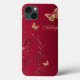 This sophisticated personalised rich red and gold floral Case-Mate Barely There brand iPad Air case has gold tone butterflies and flowers on it, along with spots for you to add your name, initials, monogram, or other text. If you need help customising this, please email niteowlstudio@gmail.com.