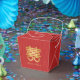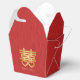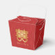 Beautiful Red and Gold Personalised Chinese Double Happiness Wedding Favour Take-Out Box. Add your name. Red Fibre background.
