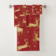 Red and gold Christmas reindeer Bath Towel Set