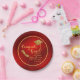 Create personalised red and gold graduation paper plates for the class of 2025 graduate with a Congrats Grad saying, and graduate's cap and diploma illustrations. Template makes it easy to type the grad's name, year and school name.