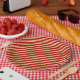 Red and Gold Diagonal Stripes Festive Paper Plate
