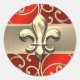 Red and Gold Filigree Swirls Fleur de Lis Classic Round Sticker