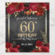 Elegant Faux gold confetti highlights on the top and bottom border. Bright deep red roses with gold floral accents. All text is adjustable and easy to change for your own party needs. Great elegant 60th birthday template design.