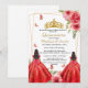 Red and Gold Floral Butterfly Twin Quinceanera Invitation