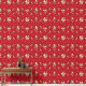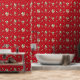 This metallic look wallpaper features gold flowers and leaves on a red background. This peel and stick wall covering is a great decor solution if you are renting. Created with A.I.