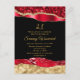 This elegant and glamourous birthday invitation features red and gold faux glitter glam tears on a black background. The text combines handwritten script and modern sans serif fonts for a classy and sophisticated look.