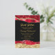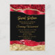 This elegant and glamourous sweet sixteen birthday invitation features red and gold faux glitter glam tears on a black background. The text combines handwritten script and modern sans serif fonts for a classy and sophisticated look.
