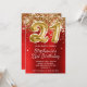 Red and Gold Glitter Foil Balloon 21st Birthday Invitation