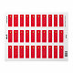 This modern design features a graduation hat and confetti in gold on a background of red with white text.