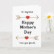 A red and gold glitter arrow happy mother's day from your favourite card for mum, grandma, etc. This funny Mother's Day card can be personalised with your own card message inside and there is a place on the back of the card for the year. A great Mother's Day card keepsake for her.