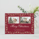 Elegant red and gold photo Merry Christmas card featuring gold holly on a dark red background. Easily personalise this photo Christmas card with your favourite photos and the family name.