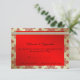 This elegant design, called Red and Gold Indian Damask Wedding, has a gold background with a red damask pattern. On the front there is a gold band with faux diamond band for your names and Lord Genesha just above. The back has a red and gold background with your text in gold. This set has invitations, save the date cards, response cards, thank you cards, table number cards, wine labels, wedding programs, and many more day-of wedding stationery pieces, favours, and gifts to coordinate. All elements are printed on our high quality products, they do not include any real gold, jewels, embossing, or other textile elements. All designs are copyright Noteable Expressions, Inc. All rights reserved.