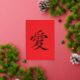 Red and Gold Kanji Love Symbol Foil Holiday Card