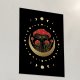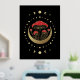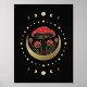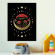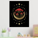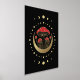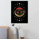 Decorate your wall or corner in your home office with this gold or silver foil poster—Red and gold magic mushrooms decorated with gold dots frame and a gold crescent moon.