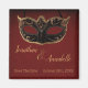 Elegant red and gold masquerade themed custom save the date wedding magnets. Personalise with your details.