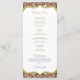 This wedding program card is designed with a minimalist layout in rich burgundy red and elegant gold. The front displays the couple’s names inside a golden frame set against a deep burgundy background, creating a bold and refined appearance. The back page presents the full wedding details in a clean, modern style accented with subtle gold highlights. The dramatic pairing of burgundy and gold gives this program a timeless elegance, making it ideal for formal and luxurious wedding celebrations.