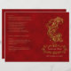 This elegant design, called Red and Gold Peacock Indian Wedding, has a red background. On the front of the invitation there is a gold peacock with a glitter effect. Towards the bottom is a gold filigree scroll design to highlight the couple's name in gold. The back has a red background with your text in gold. This set has invitations, save the date cards, response cards, thank you cards, table number cards, wine labels, wedding programs, and many more day-of wedding stationery pieces, favours, and gifts to coordinate. All elements are printed on our high quality products, they do not include any real gold, jewels, embossing, or other textile elements. All designs are copyright Noteable Expressions, Inc. All rights reserved.