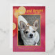 This original design, this is simple elegant red and gold Christmas card featuring a single photo on the front. Above the photo is text in a modern font which reads: Merry & Bright. There is a spot below the photograph for you salutation and name. The back of the card contains ample space for your holiday greetings. You may also leave the back blank. Don't forget to change the messages and insert your photo!
