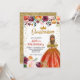 Red and Gold Princess Floral Quinceañera Birthday Invitation