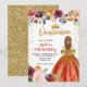 Red and Gold Sparkle Dress Floral Quinceañera Birthday Invitation