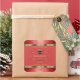 Make a lasting impression with this luxury and modern product label design featuring shimmering gold ornaments on a red coloured background with glitter borders.