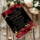 Elegant Red and Gold Watercolor Roses clipart with gold glitter and diamonds on black background