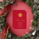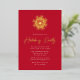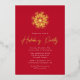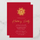 Modern foil holiday party invitations featuring a gold foil snowflake at the top of the design with a festive red background. "Holiday Party" is displayed in a handwritten gold foil script. Personalise the foil snowflake holiday party invitations with your party details in white lettering.